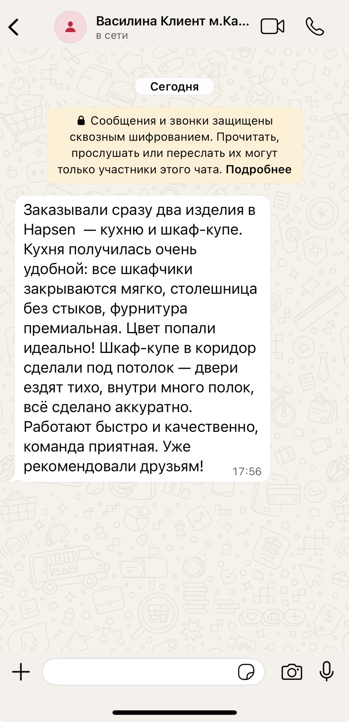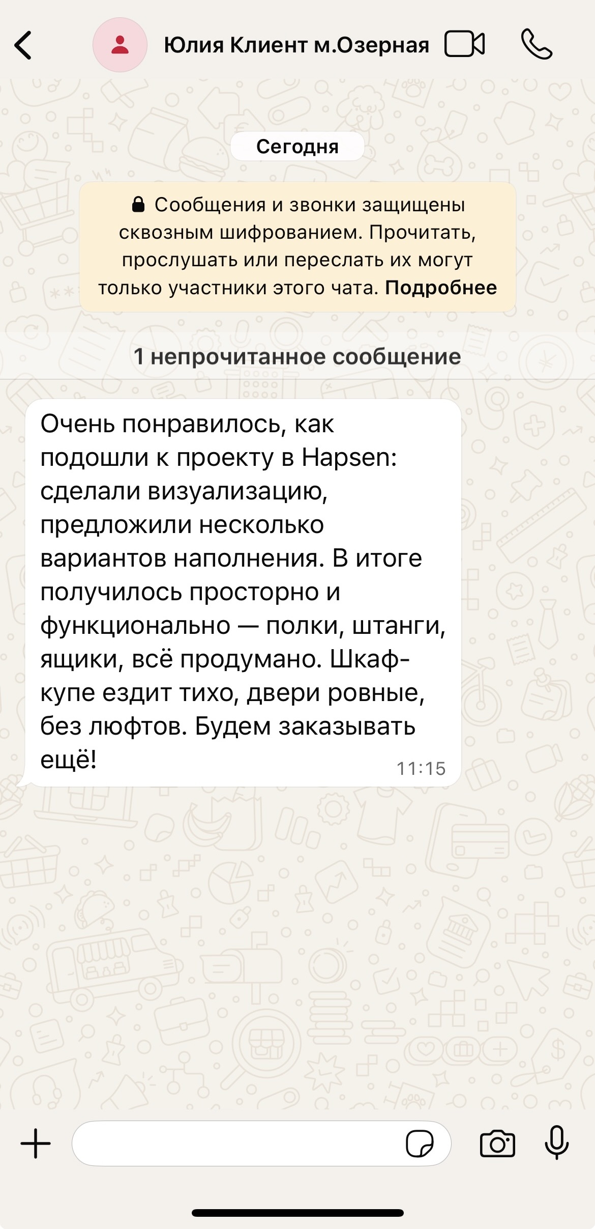 Шкаф на заказ — это возможность создать идеальную систему хранения, полностью адаптированную под пространство вашего дома. Благодаря индивидуальному проекту, качественным материалам и собственному производству HAPSEN вы получаете функциональный, красивый и долговечный шкаф, который станет частью вашего комфорта на долгие годы.